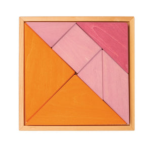 7 piese de puzzle (din lemn) într-o cutie pătrată - cea mai frumoasă invitație la descoperirea formelor geometrice, la stimularea imaginației și a vederii în spațiu, la distracție cu prietenii/părinții.