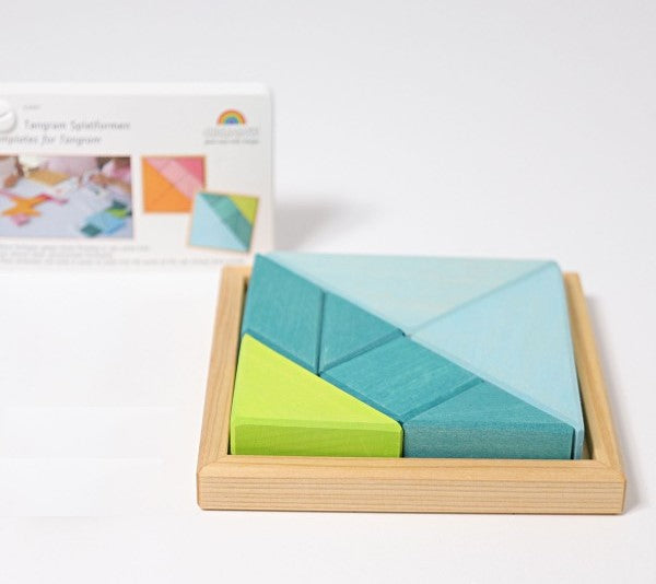 Acest set frumos colorat include o cărticică cu șabloane pentru inițierea în vechiul joc chinezesc, tangram.