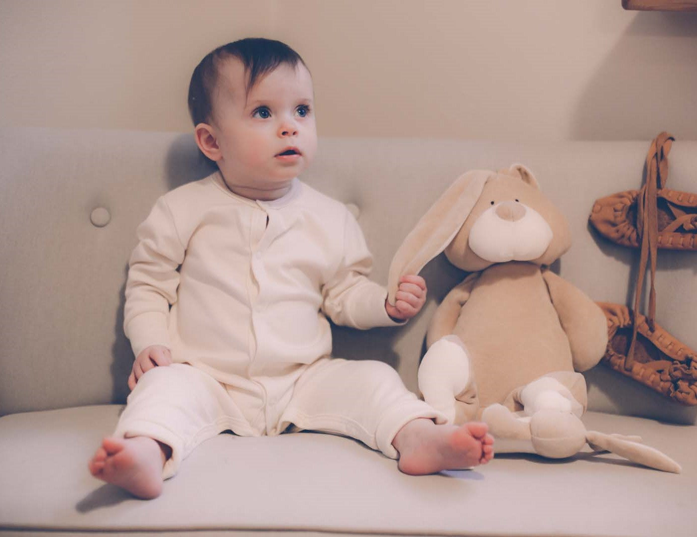 • este o jucărie sigură, hipoalergenică, fabricată din bumbac 100% organic la exterior și umplută cu fibră de porumb 100% certificată Oeko-Tex